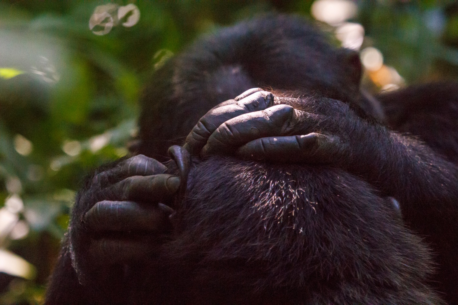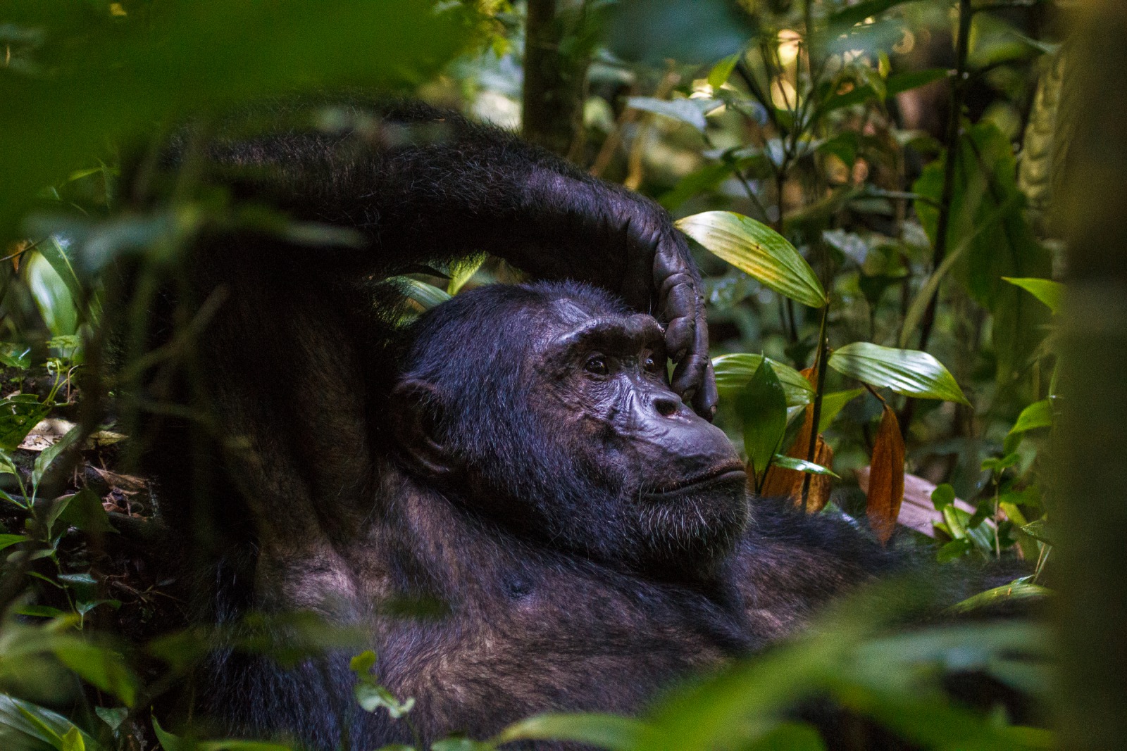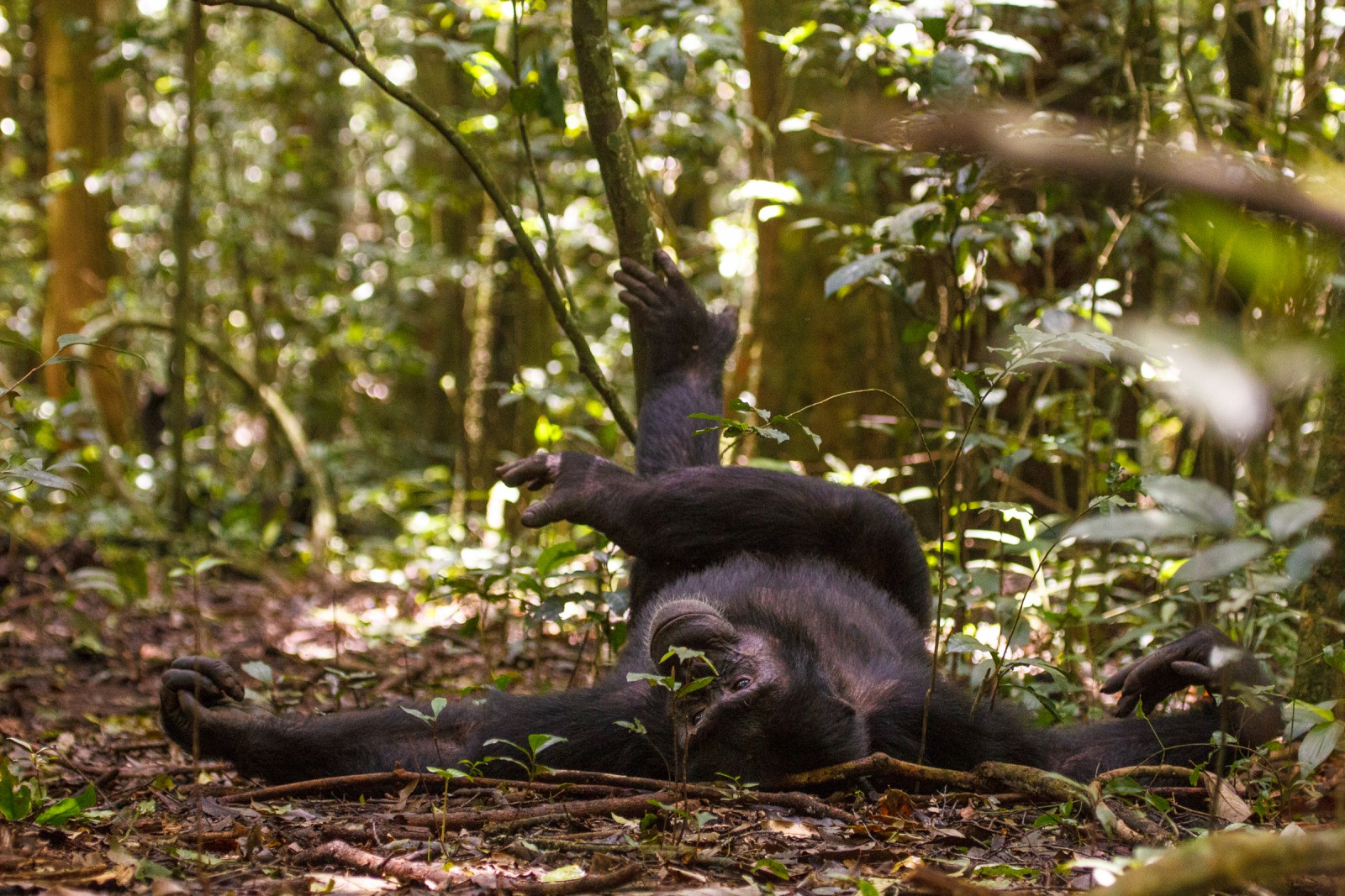 When a far away call disturbs one of them, he peers around me as if I were a tree, just another inanimate object that happens to be blocking his view. A chimpanzee's normal response to a human is to flee – after all we are their biggest threat. So why do these chimps act so strangely? Most primate encounters in Africa rely on habituation. A process where animals are exposed to human contact over prolonged periods of time – often 5+ years! Rangers or researchers may visit a specific group of chimpanzees at their nesting sites every morning for several hours. Over the course years, humans become accepted as part of the normal environment, a non-threat that can be ignored.